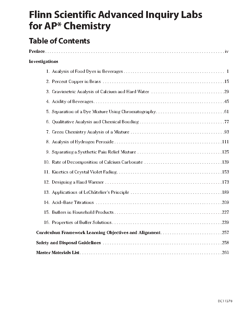 Table Of Contents Flinn Scientific Advanced Inquiry Labs For Ap