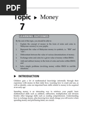 Topic 7 Money Pdf Coins Money Free 30 Day Trial Scribd