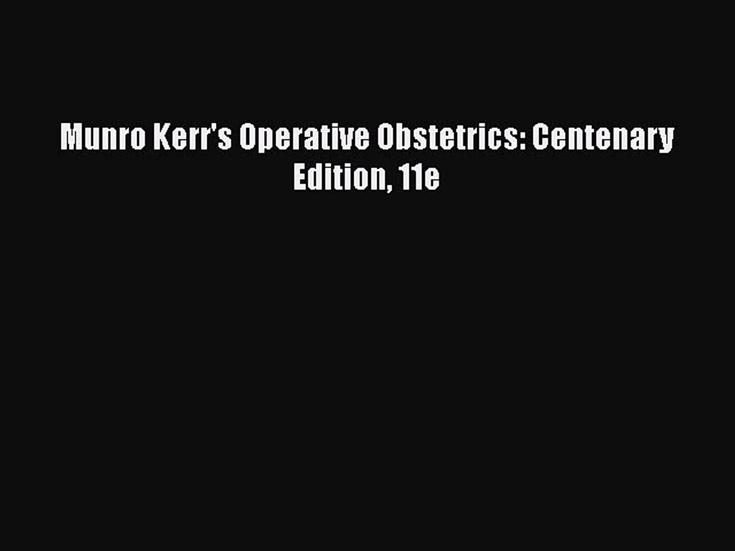 Munro Kerrs Operative Obstetrics 12e Pdf Video Dailymotion