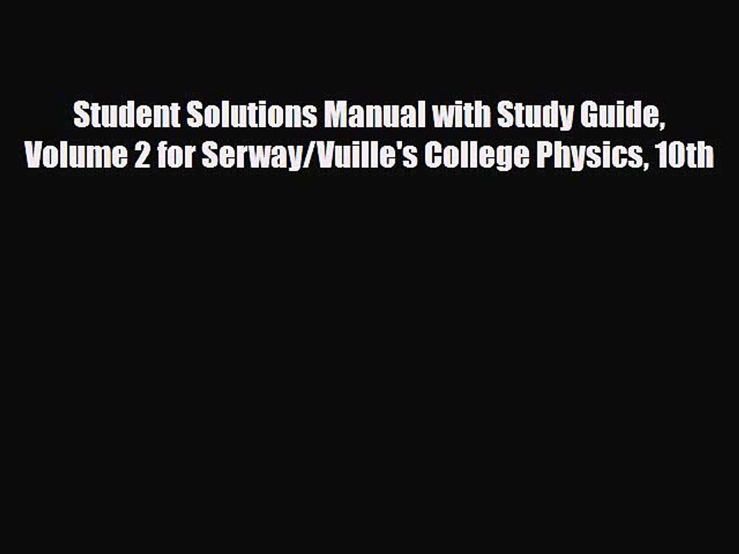 Serway R A Vuille C Instructor S Solution Manuals To College