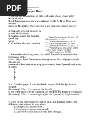 Textbook Scavenger Hunt Spanish 2 Communication Cognition