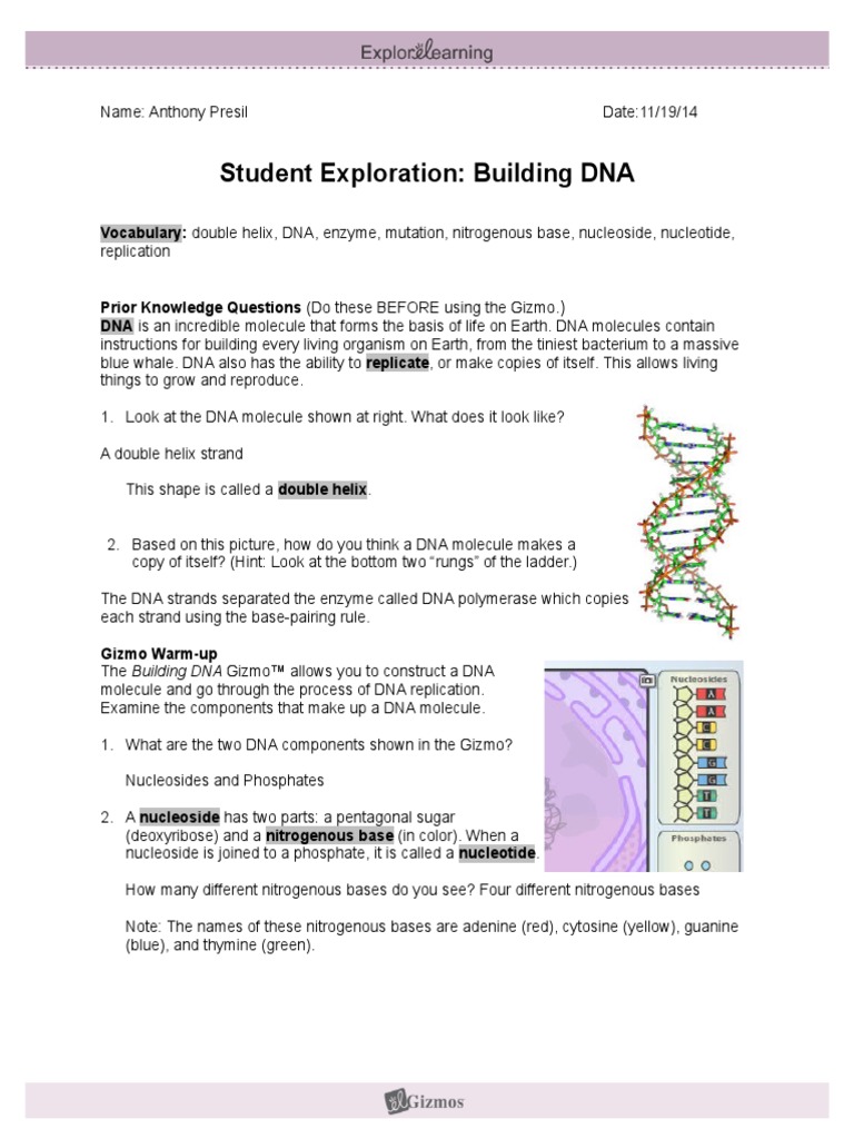 Student Exploration Building Dna Nucleotides Dna