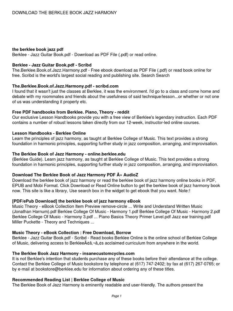 Pdf Library The Berklee Book Of Jazz Harmony E Books Online