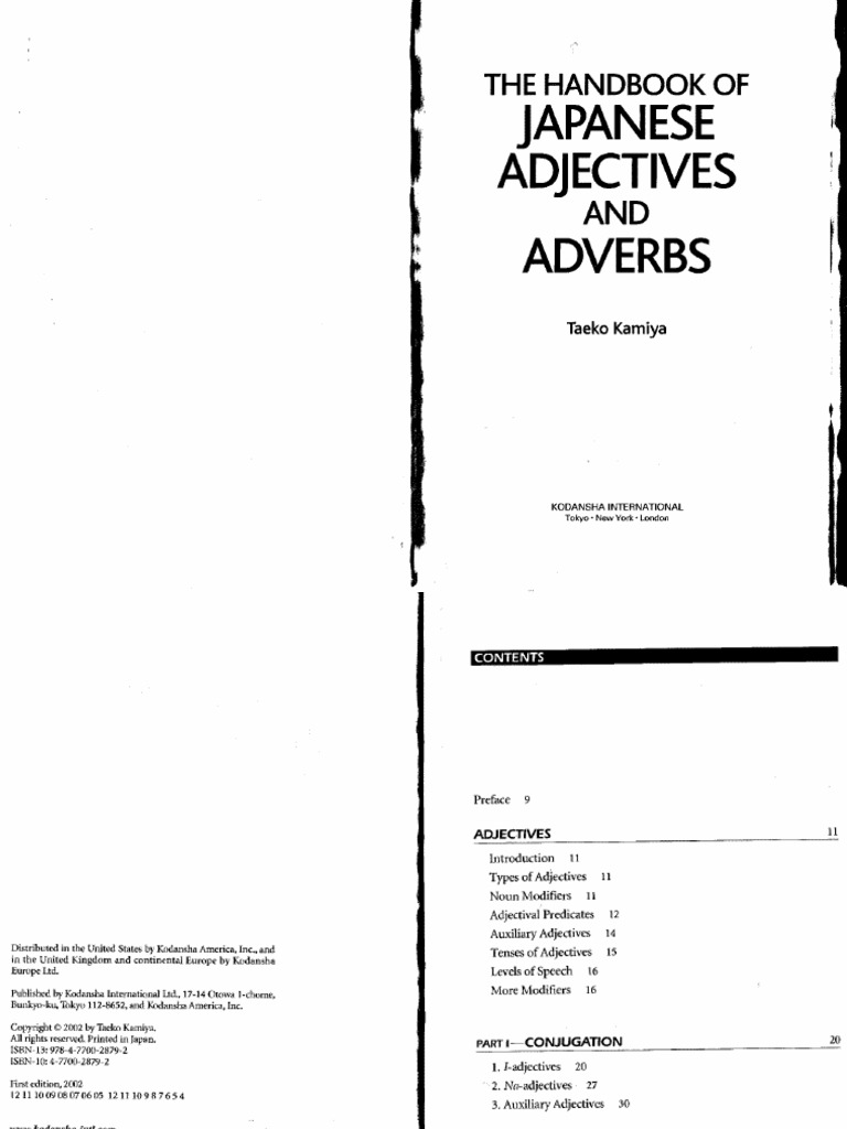 Japanese Adjective And Adverb Handbook Pdf Document