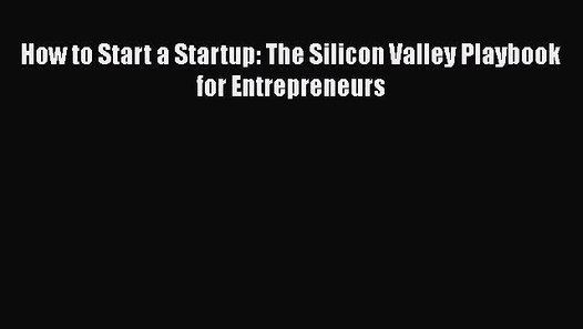 Read How To Start A Startup The Silicon Valley Playbook For