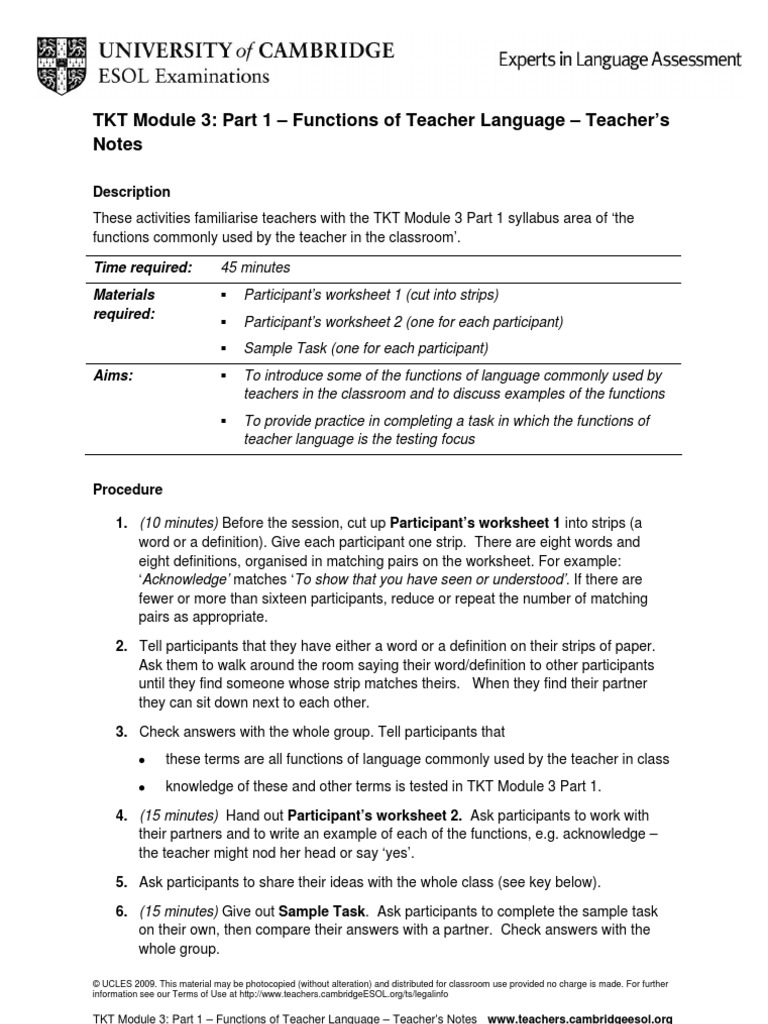 Tkt Module 3 Part 1 Functions Of Teacher Language Classroom