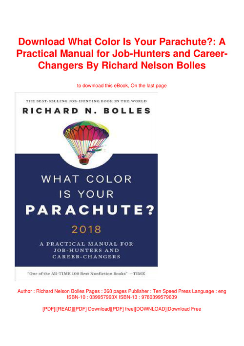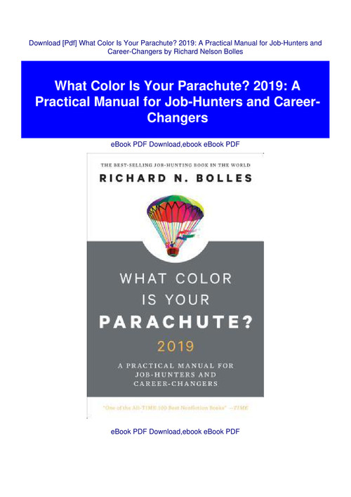Is the worlds most popular job hunting guide with more than ten million copies sold. Download what color is your parachute. A practical manual for job hunters and career changers by richard n. What color is your parachute.